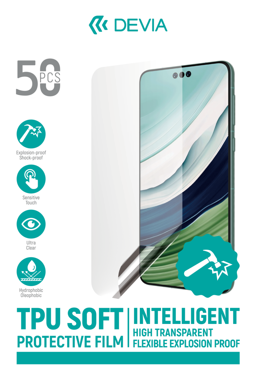 DEVIA Öngyógyitó karc és ütésálló fólia telefonokra ( 150 mikron ) 50 darabos szett