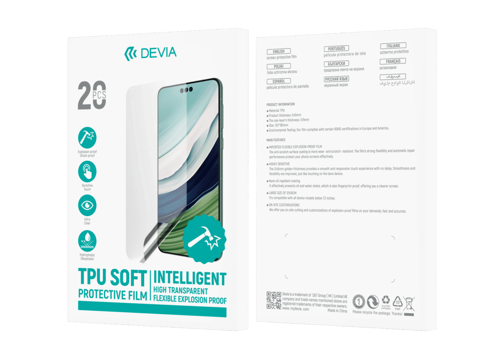 DEVIA Öngyógyitó karc és ütésálló fólia telefonokra ( 150 mikron ) 20 darabos szett