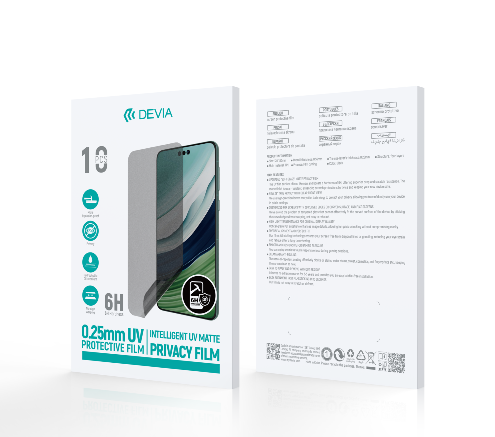 Devia UV MATT PRIVACY karc és ütésálló fólia telefonokra 250 micronos 10db-os szett (UPDATE)